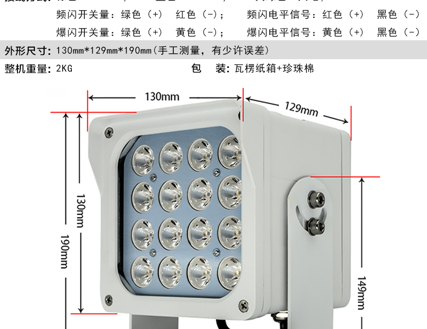★發光脈沖寬度可調,適應各種攝像機的曝光時間;