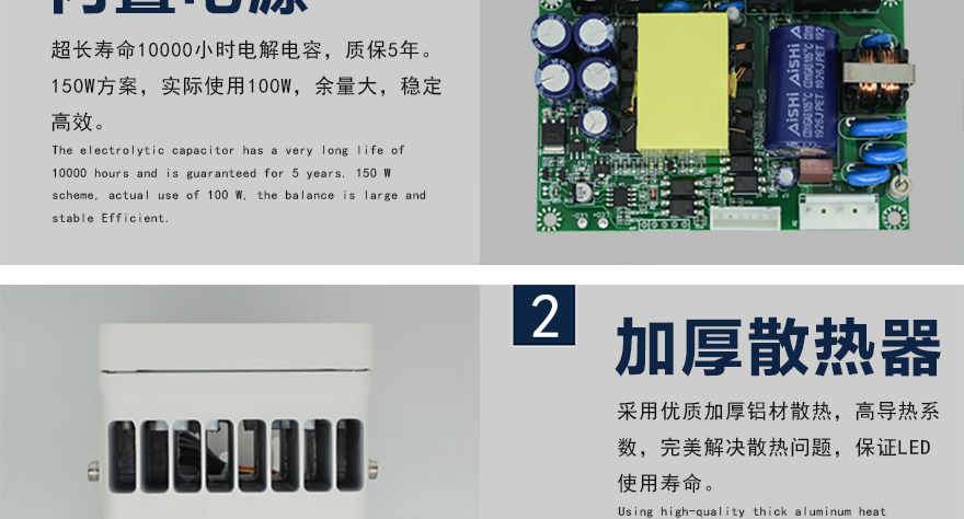 ★鋁合金壓鑄外殼,加厚鰭形散熱后蓋,散熱好,壽命長;